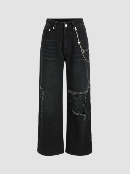 Ripped Jeans With Butterfly Chain