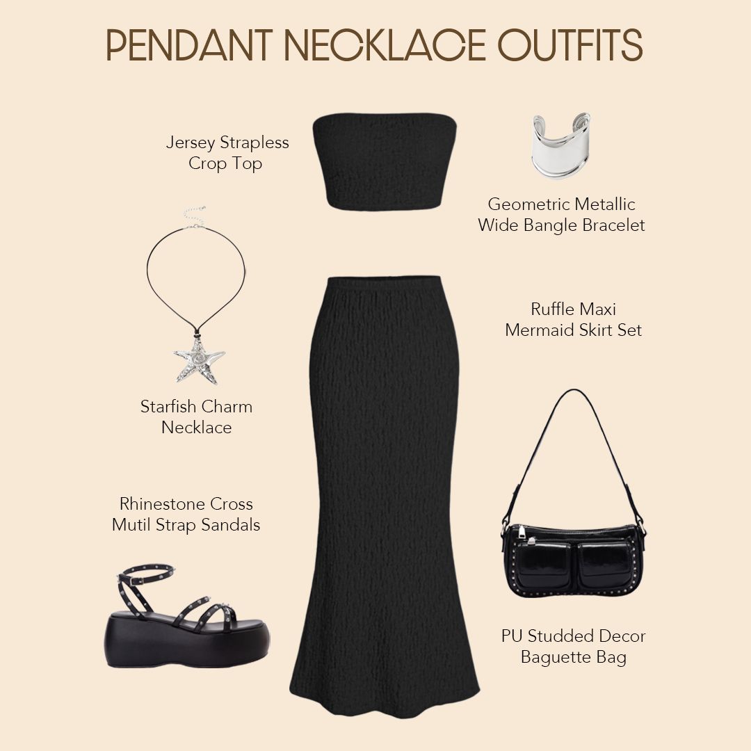 - Neckline - Pay attention to the neckline of your top when choosing a pendant necklace. A longer pendant necklace looks great with a low-cut top, while a shorter necklace can complement a higher neckline.