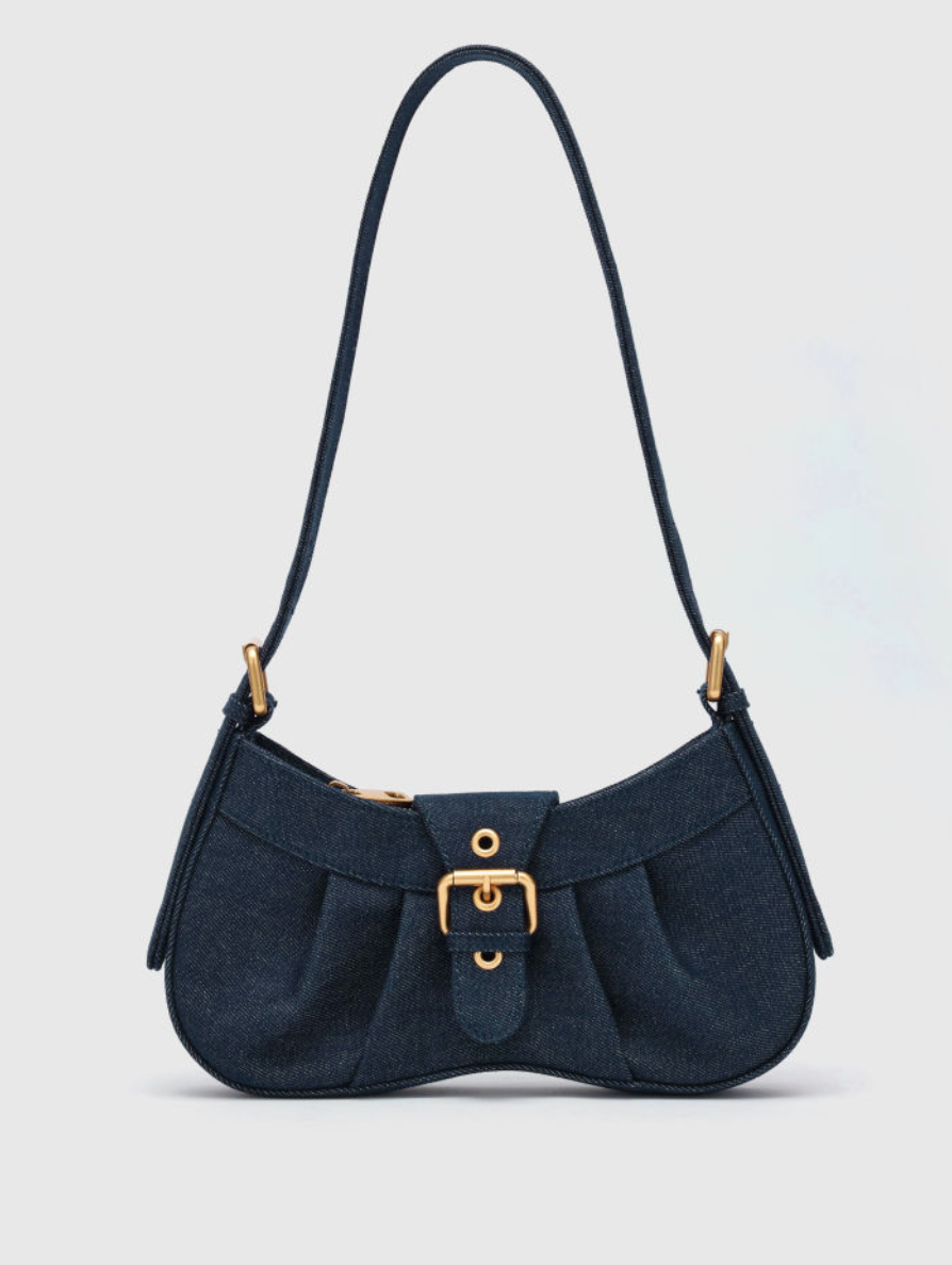 We can't help but fall back into our Y2K roots. With styles like this, who can blame us?! This dark-wash Denim Buckle Ruched Shoulder Bag is bold, chic, and soooo Lizzie Mcguire circa 2002! With an adjustable strap and gold details, this shoulder bag is perfect for holding all your essentials – phone, wallet, lipgloss, the tears of a thousand boys... yano, that kind of thing! 🦋