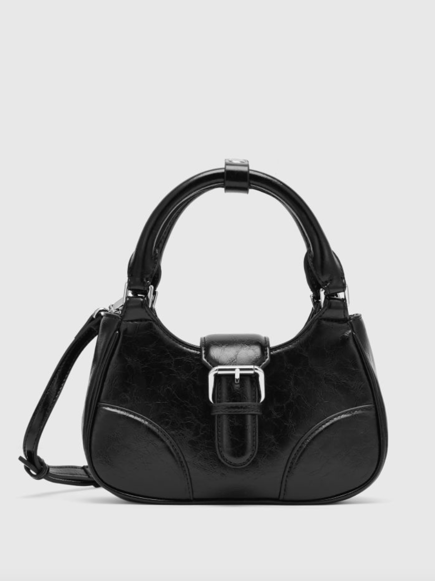 Everyone needs a little black bag in their wardrobe! This PU Solid Buckle Top Handle Bag is only $29 and features the cutest little shoulder strap/crossbody combo. With silver buckle details, this faux leather shoulder bag is sure to be your new favorite accessory! 🖤