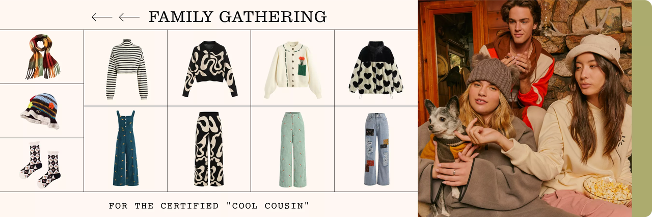 Family functions are all about comfort foods, family gossip, and hanging out with your adorable (or really annoying) cousins. Show up best dressed to any this year with our favorite chunky knits, matching sets, and more! Get ready to be the main focus of the family photo this year, you (and your cute outfit) deserve some spotlight!