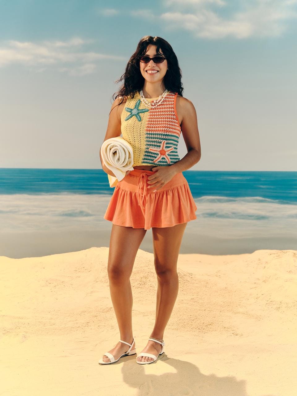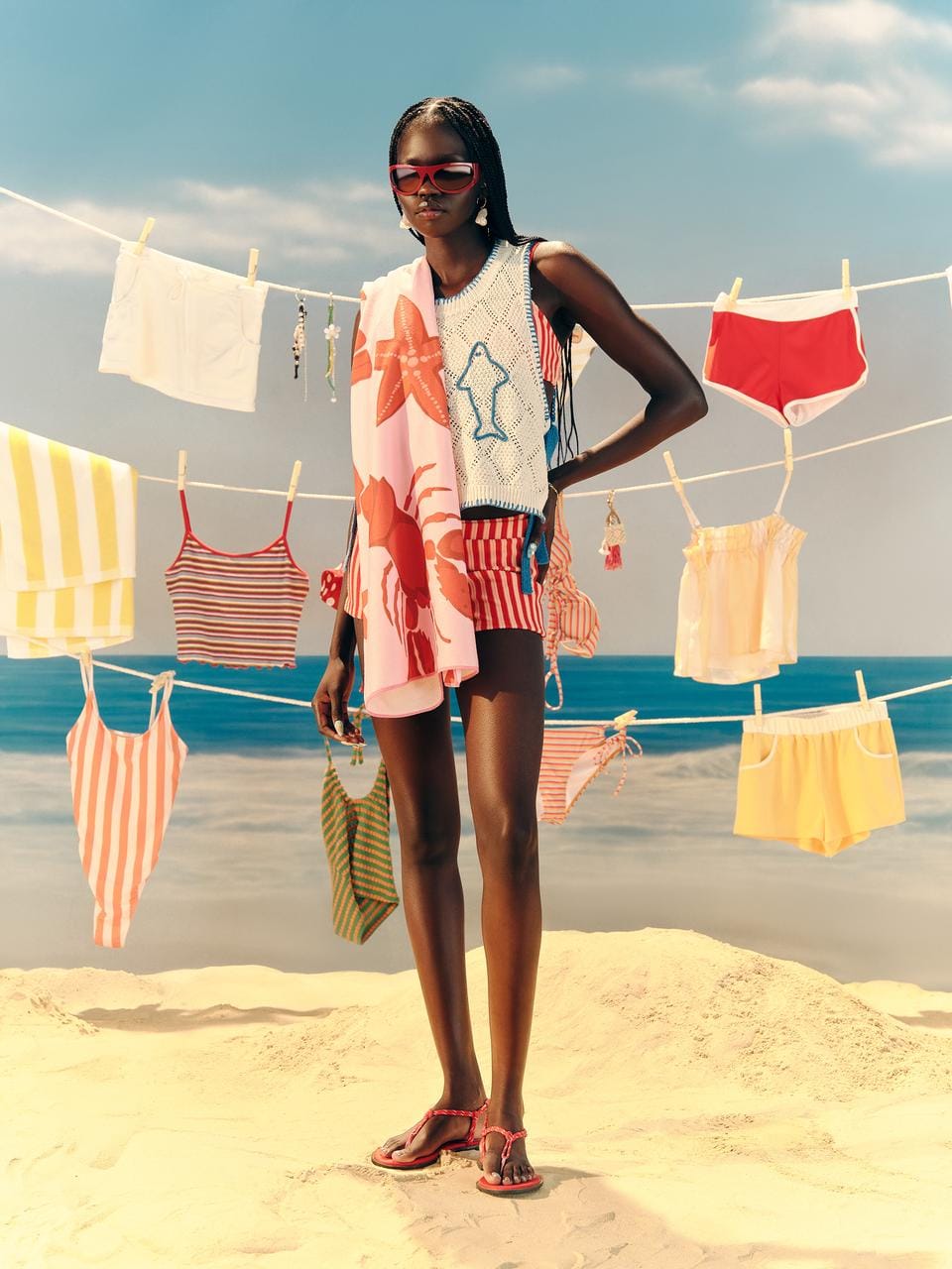 Color is key here—bold and vibrant tones dominate the scene. Butter yellow, orange sorbet, hot red, and breezy blue mirror the palette of popsicles and sun-drenched skies. Ocean motifs like seashell prints, playful surfing patterns, and beaded accessories bring a wink of whimsy to every look.