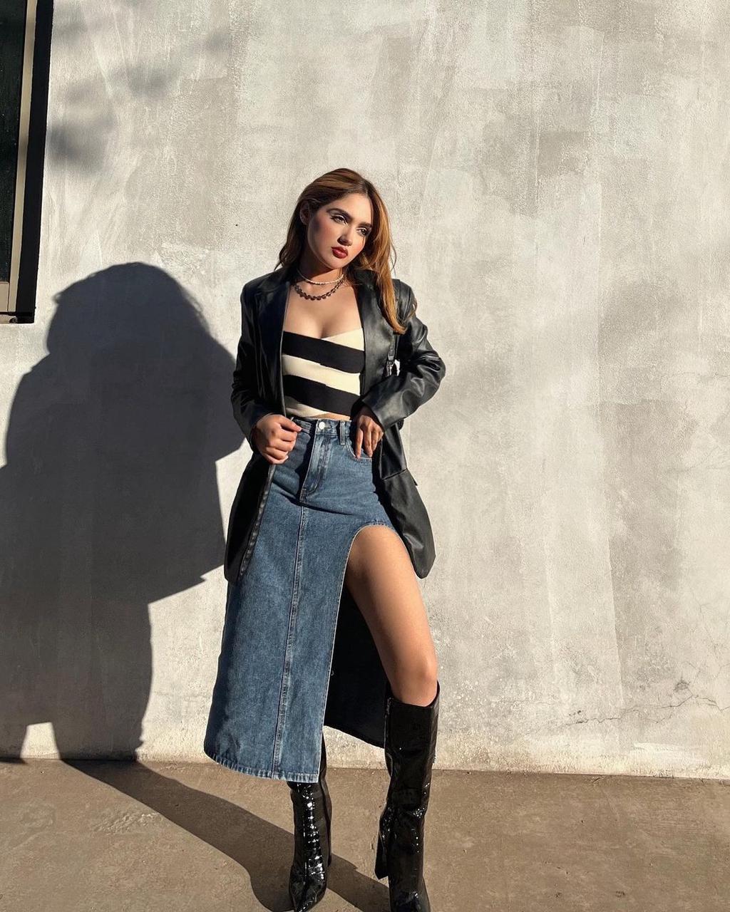 Our ultimate Virgo queen wears the Patchwork Zipper Up Tube Top and Denim Solid Split Midi Skirt, paired with a leather jacket (check out our Cool Faux Leather Jacket, if you don't have one yet!) and boots to match. Totally recommend this fit for a night out in the Juárez neighborhood! 🍸