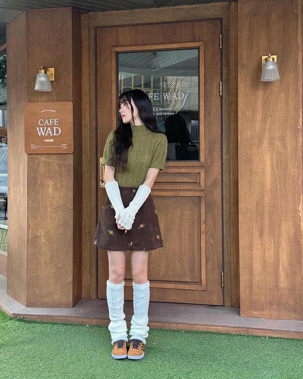 You can find Gaeul at the cutest cafés in Seoul getting an iced americano (even on those chilly days!). Love seeing her looking cozy and cute in our Solid Leg Warmers and Corduroy Floral High Waist Skirt ✨