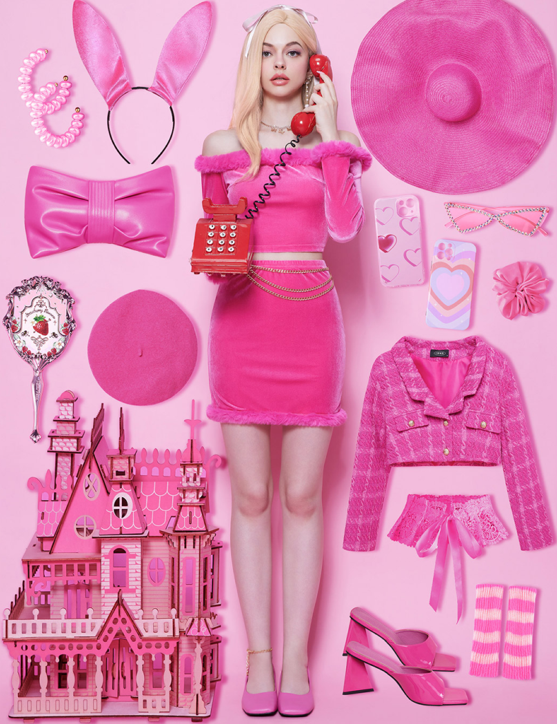 "Life in plastic, it's fantastic!" 🎀 The Pink Fashion Doll Costume Top is a pink lovers dream! With a cropped fit, off-the-shoulder design, and a hot pink fuzzy neckline and cuffs, this long sleeve velvet top is cute and playful. Pair with our matching Pink Fashion Doll Costume Skirt to complete the Halloween set. Now, has anyone seen Ken?! 🌸