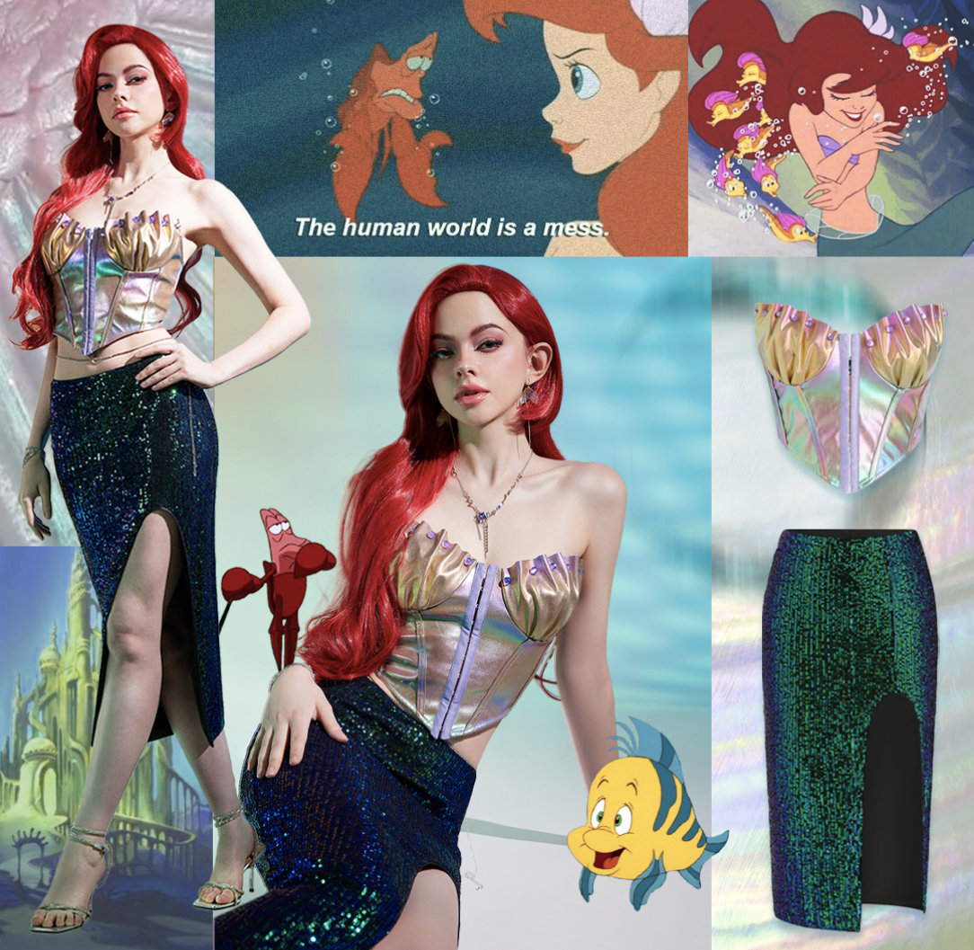 Part of that world 🎶 Get the princess look this Halloween with the Under The Sea Princess Costume Top. This top features a strapless, shell-inspired shaped neckline with a corset-style fit and a shiny, iridescent sheen. Pair with our matching Under The Sea Princess Costume Skirt to complete the Halloween set. Oh, and don't forget your fiery red wig! 🔥