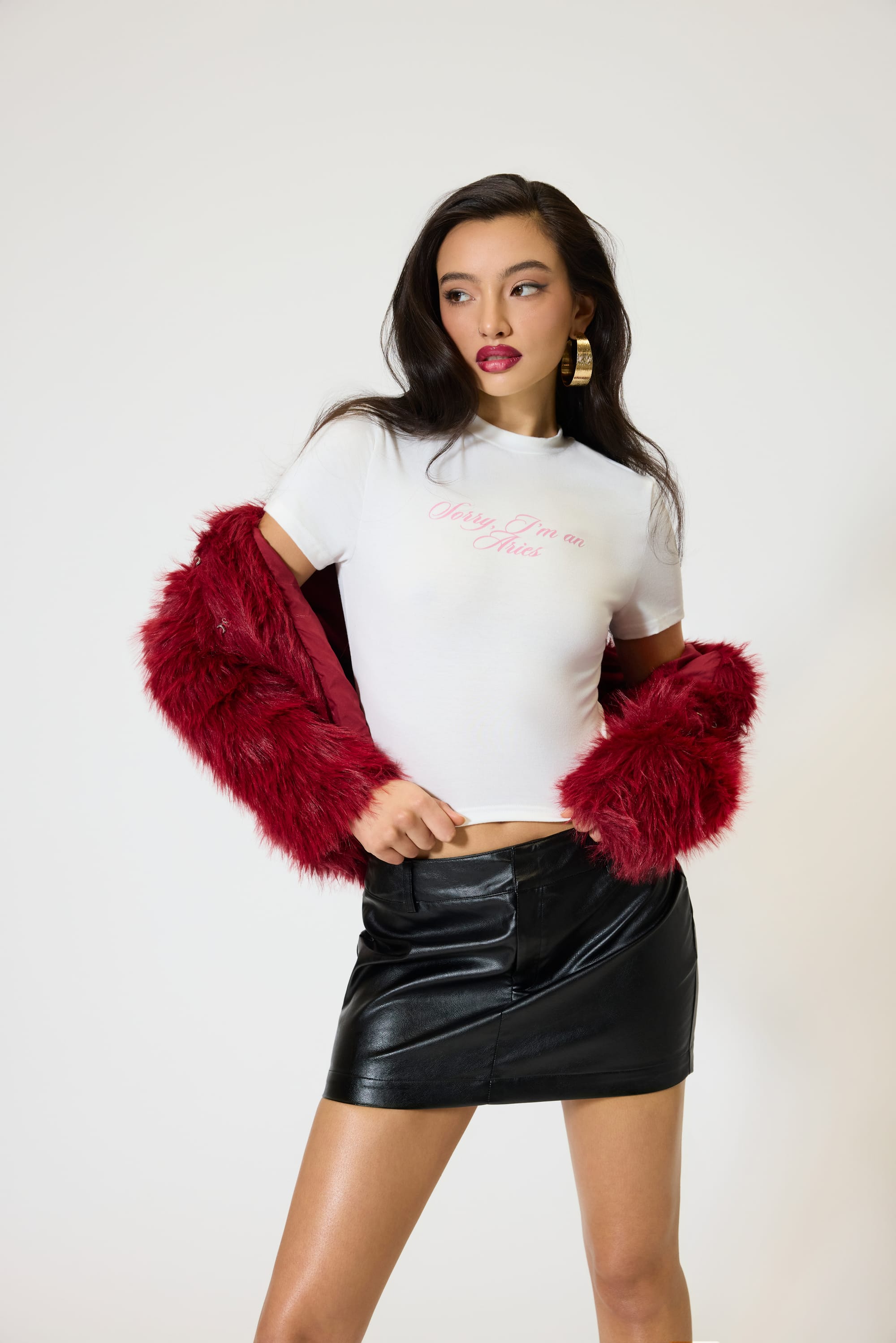 - Aries: Red faux fur jacket ➕ black leather skirt, paired with a simple white tee 🟰 full-on power vibes ⚡! Bold, edgy, and 100% Aries-approved!