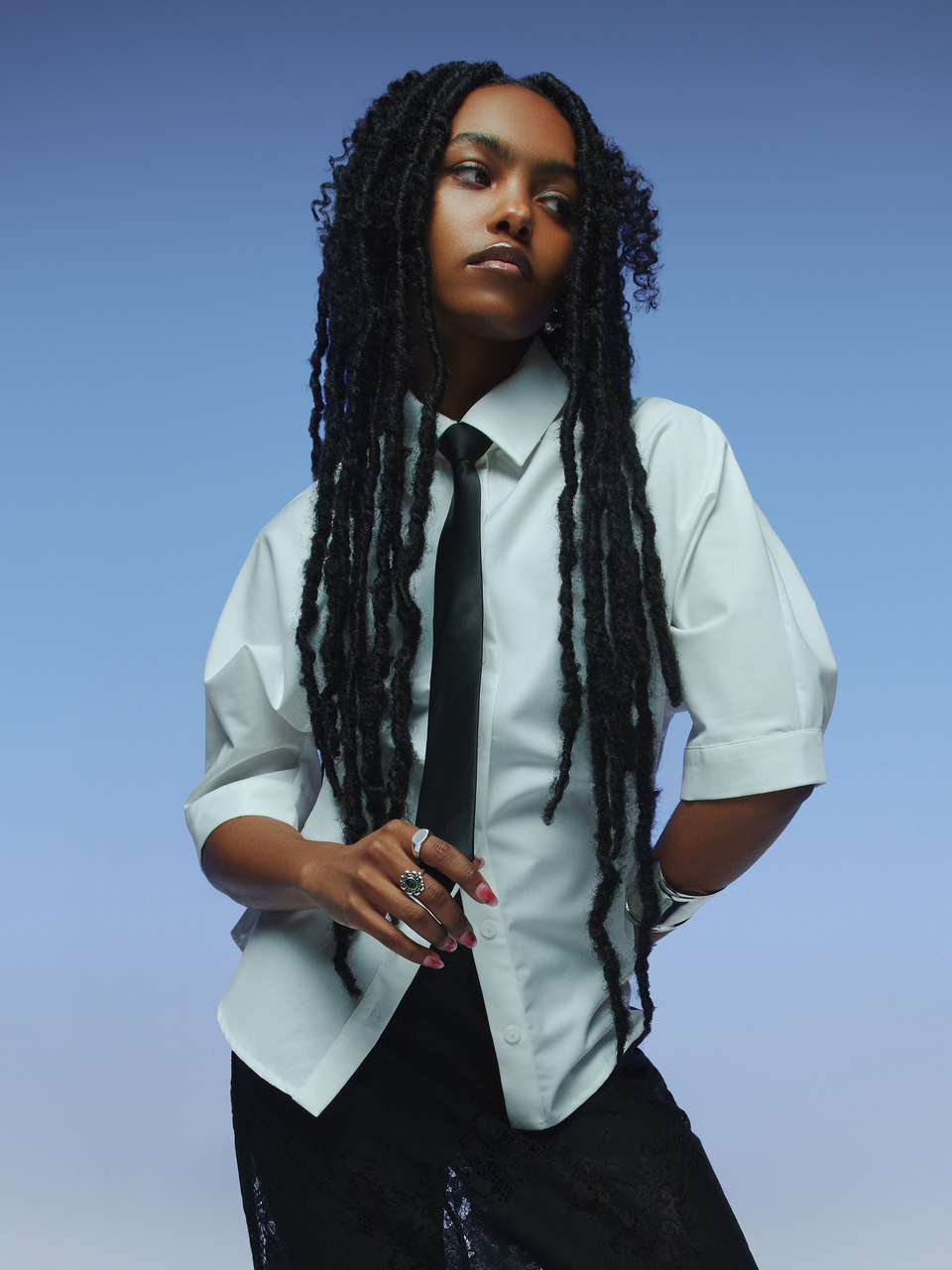 Destiny Joseph, the all-in-one model, content creator, and stylist, defines Feeling Edgy as pushing the boundaries of masculinity and femininity without caring what anybody thinks. "The freedom to wear what you like and what makes you happy should always be someting you think of first when getting dressed," she said while pulling pieces during the shoot. TLDR; individuality is the best accessory.