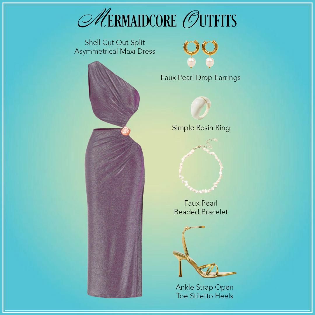 - Experiment with asymmetrical silhouettes: Mermaidcore often features asymmetrical cuts and wavy hems reminiscent of a mermaid's tail. Enjoy playing with different shapes of mermaid-inspired outfits!