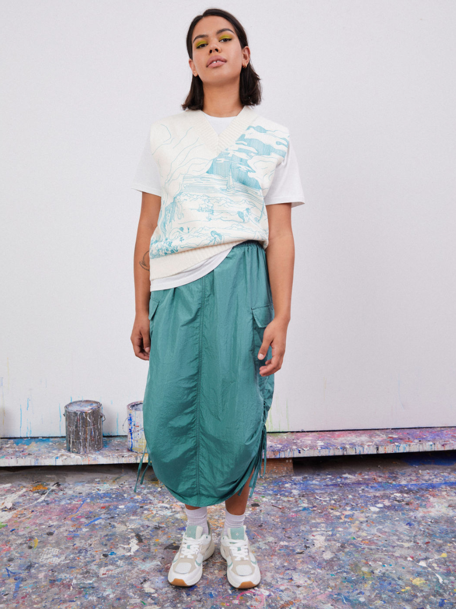 Artistic Vision Sweater Vest & Deep Ocean Cargo Parachute Skirt