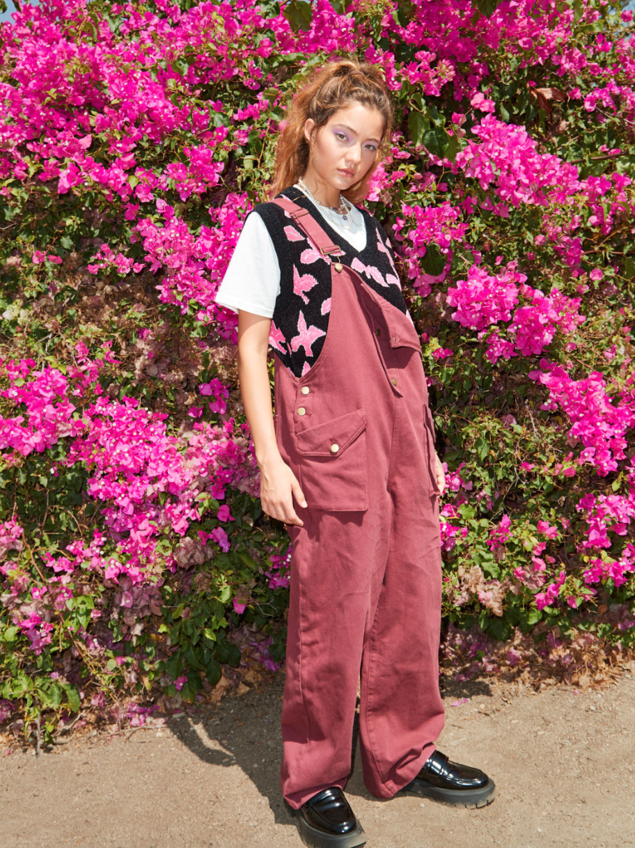 Art Show Burgundy Overalls & Iris Wishes Graphic Sweater Vest
