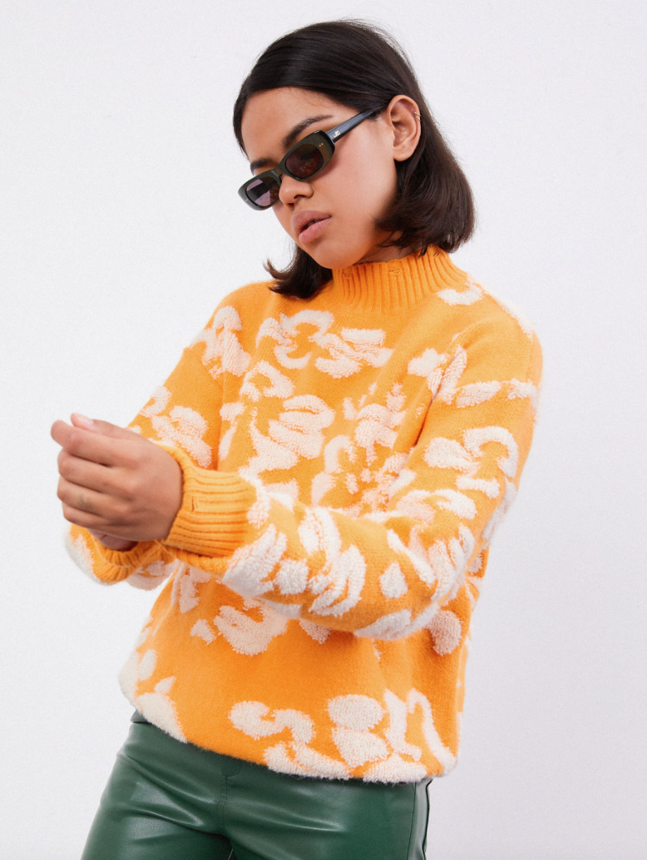 Floral High Neck Sweater