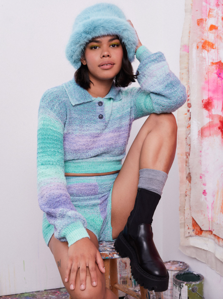 Gradient Collar Button Up Knitted Crop Top