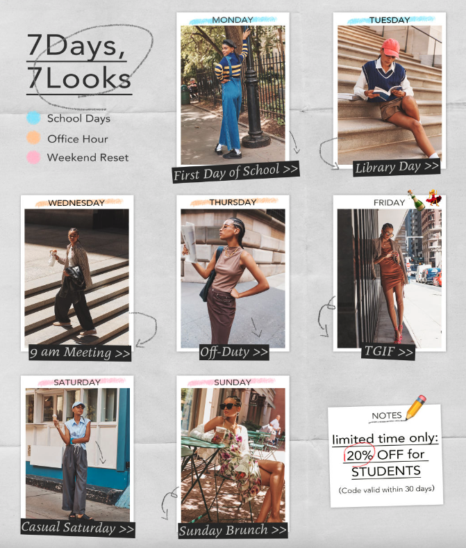 Whether you're going for a laid-back, cool girl vibe or a preppy chic look, our newest edit, Pick a Mood or Don't: Too Cool For School has everything you need to be best-dressed this semester! From wide-leg trousers and oversized blazers to cropped sweaters and pleated skirts, this edit will take you from the classroom to your office internship (and then to happy hour, ofc)! 😉
