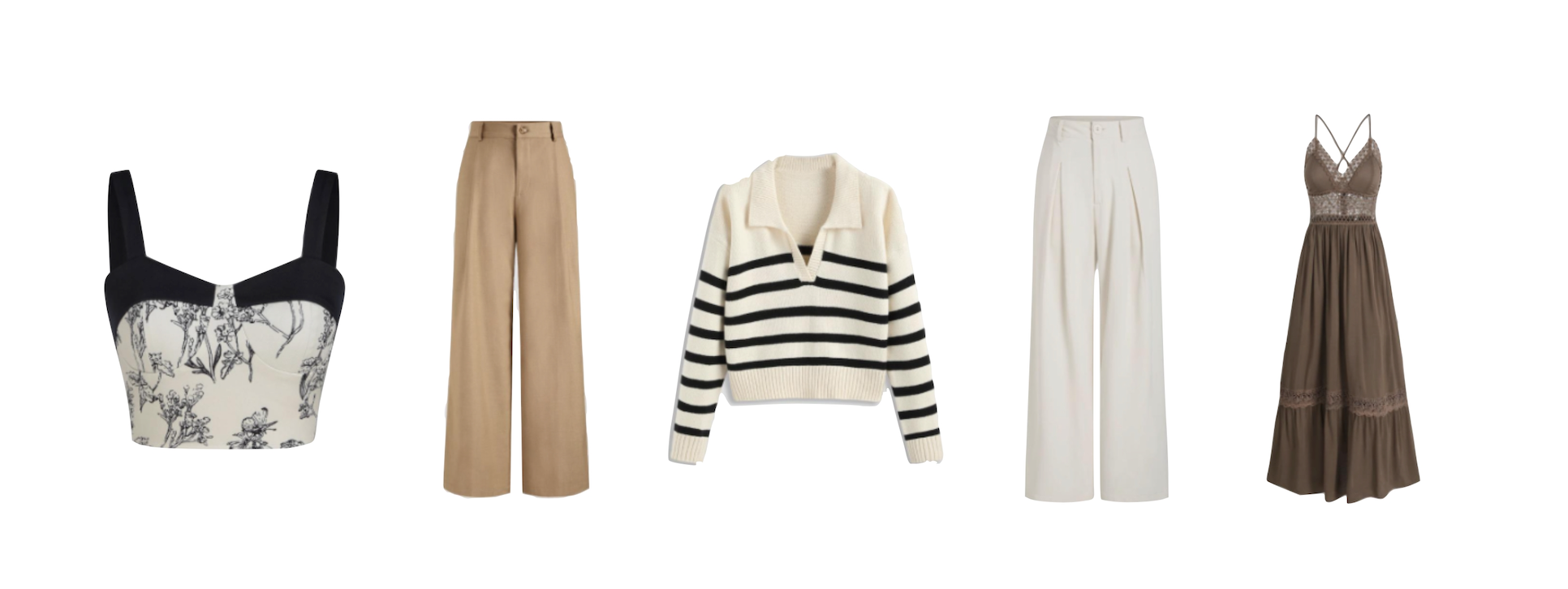 Sticking to light neutrals, the color palette around this aesthetic is primarily white and beige. These hues create a quiet, relaxed color atmosphere, perfect for embodying your always cool, never bothered beachside grandmother. Button-down shirts and loose long dresses are all must-haves along with accessories such as straw hats, oversized straw bags, or even small, patterned headscarves!